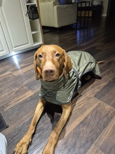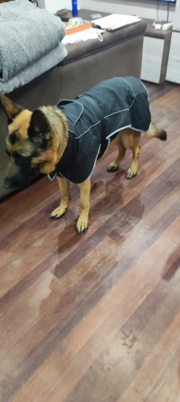 - Keeps your dog dry, warm, and visible on rainy walks